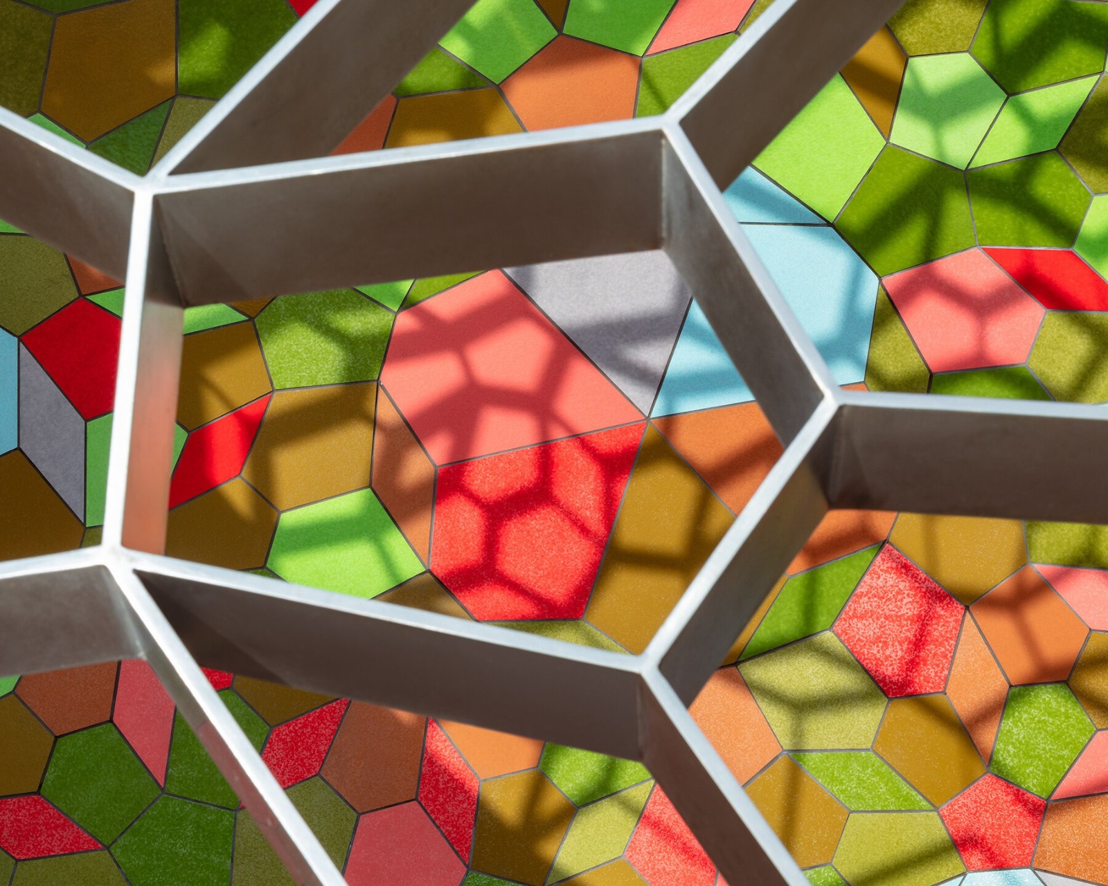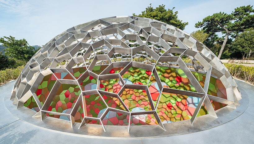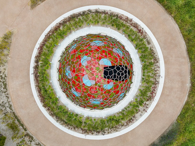 11月30日,由著名裝置藝術(shù)家奧拉維爾·埃利亞松(Olafur Eliasson)設(shè)計的景觀藝術(shù)裝置——“呼吸的地球”(Breathing Earth Sphere)建成細節(jié)公布。作為“新安藝術(shù)島”項目的一部分,裝置位于韓國全羅南道道場島(Docho Island)上,旨在將藝術(shù)、自然、材料創(chuàng)新三者生動融合。“呼吸的地球”通過反映道場島獨特的火山歷史和郁郁蔥蔥的自然環(huán)境,將火山景觀變成了一種身臨其境的藝術(shù)體驗。設(shè)計利用一條綠樹成蔭的小路,引導(dǎo)游人通向一棵韓國本土樸樹和一張供人沉思的長椅。從那里,游客們會進入一處位于地下的球形冥想空間。值得一提的是,構(gòu)成球形空間的材料取材于當?shù)鼗鹕綆r,由1200塊定制的熔巖瓷磚組成;其在外觀上由24種顏色構(gòu)成,逐漸從土紅色色調(diào)轉(zhuǎn)變?yōu)榇渚G色調(diào),象征著植物從土壤中生長的自然演變關(guān)系。此外,設(shè)計消除了傳統(tǒng)的空間界限——球體內(nèi)沒有墻壁、天花板或地板,游人會從色彩的轉(zhuǎn)變和瓷磚上的光影變化獲得豐富的感官體驗。