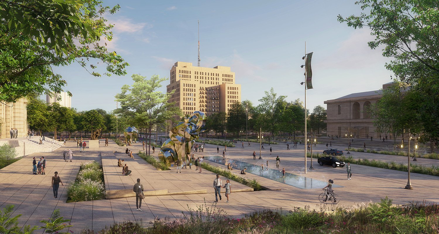 計劃的第一階段將在底特律藝術學院下方建造一個新的地下停車場,提供約250個停車位和電動汽車充電站。設計采用了完善的照明系統(tǒng),以增強安全性和可達性,并設有綠色屋頂?shù)群>d城市設施管理雨水徑流。地下停車場完工后,第二階段將現(xiàn)有的地面停車場改造為充滿活力的公共廣場,用于舉辦文化活動和慶祝節(jié)日,并促進各文化機構之間的互動和參與。此外,設計將當前40%的汽車主導空間改造為慢行交通區(qū)域,以容納更多無障礙公共空間。