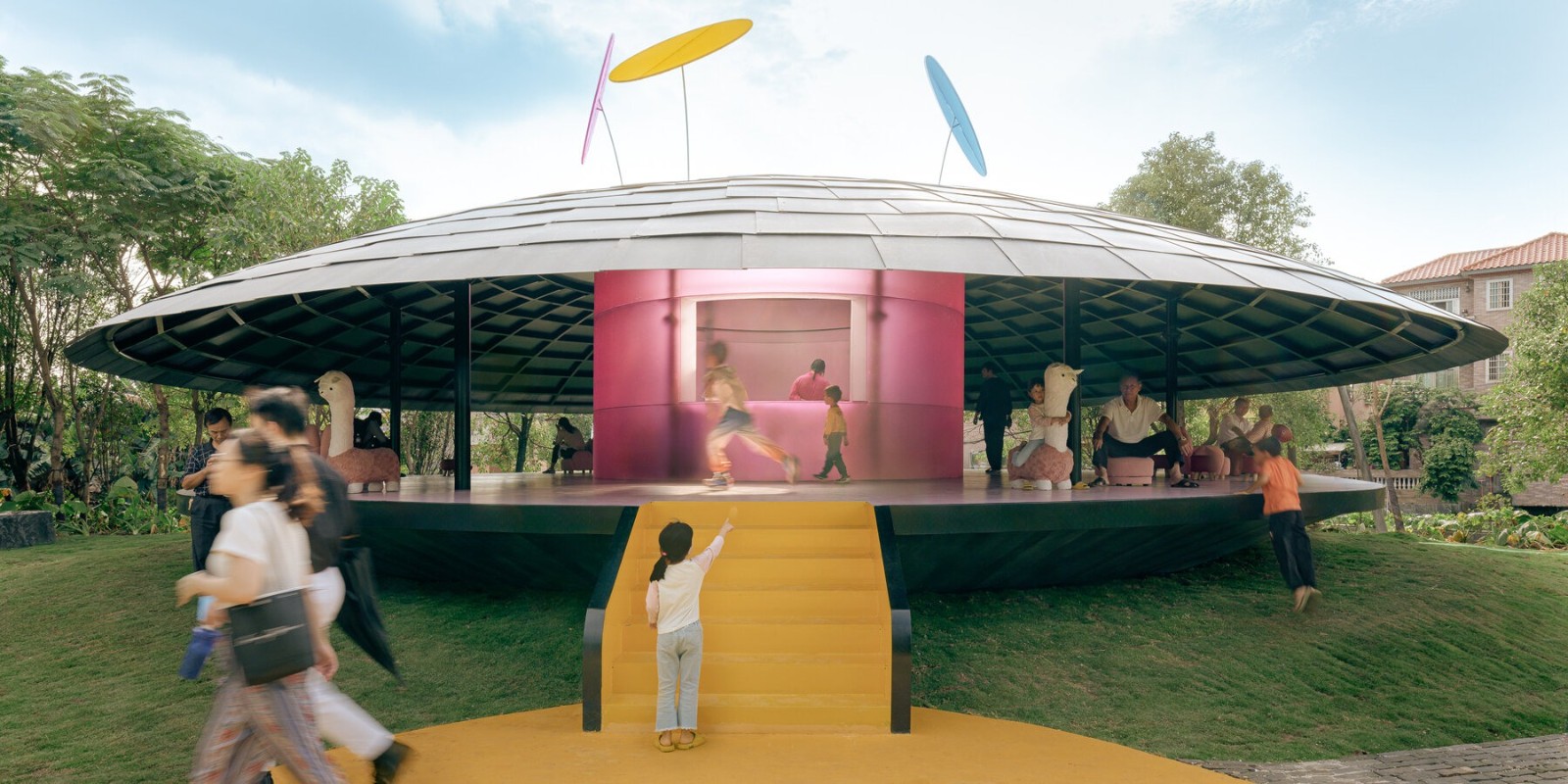 近日,MAD建筑事務(wù)所公布其在2024年廣東南海大地藝術(shù)節(jié)的新作“無憂屋”(The Never Nut)的建成細(xì)節(jié)。該藝術(shù)節(jié)的核心理念是“鼓勵童年幻想,加強(qiáng)社區(qū)聯(lián)系,將歷史悠久的游樂場重新想象成一個充滿活力的聚會空間”。項目位于佛山市南海區(qū)煙南村,村落建于明朝,至今已有600多年歷史,村內(nèi)保存了大量清代古建筑群,規(guī)劃嚴(yán)整,河涌交錯,綠樹成蔭。場地曾為一所小學(xué)的操場,對當(dāng)?shù)厣鐓^(qū)具有深遠(yuǎn)的意義。