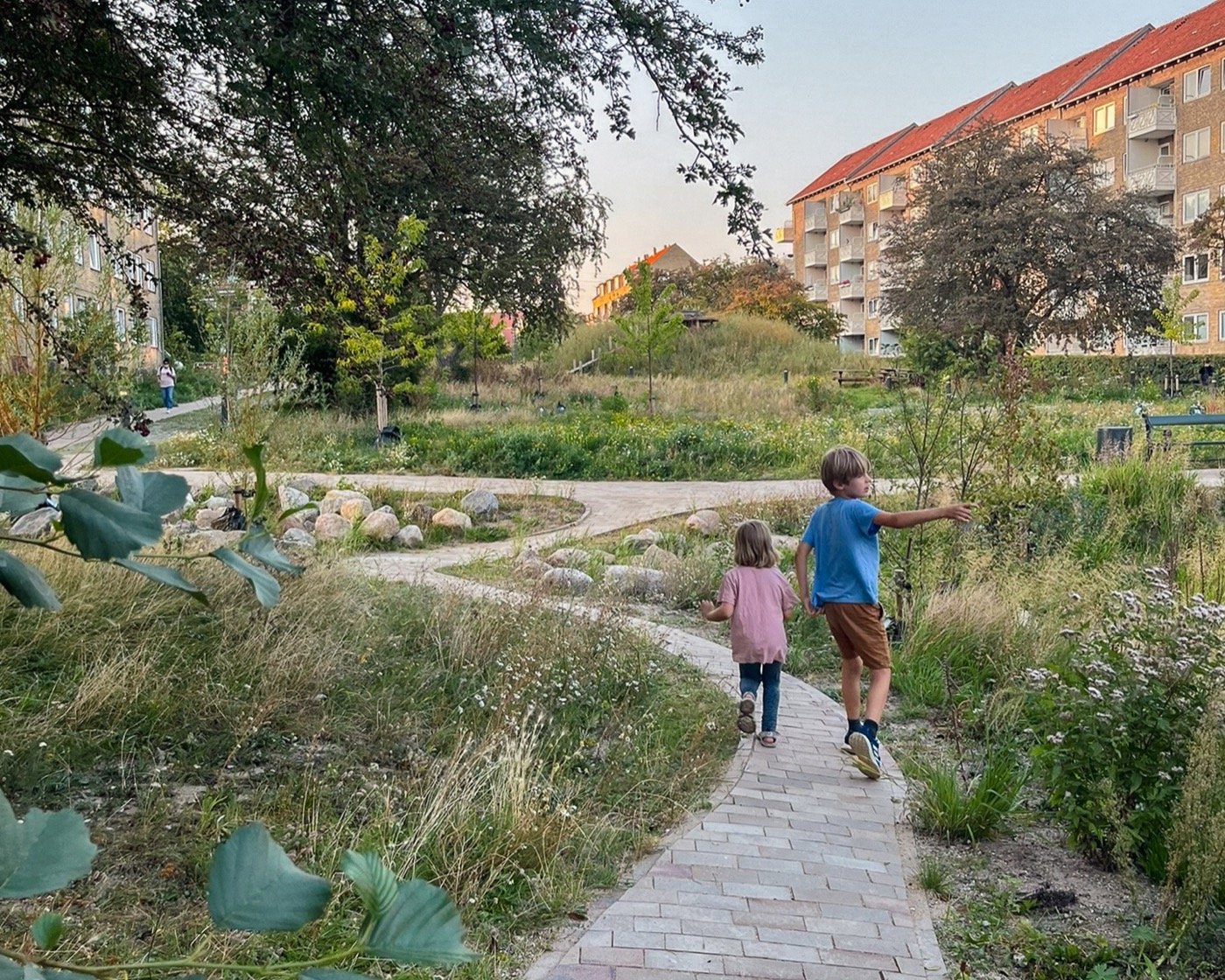 日前,丹麥哥本哈根的格倫寧根-比斯佩公園(Gr?nningen-Bispeparken)建成細(xì)節(jié)公布。公園始建于20世紀(jì)50年代,由丹麥著名景觀設(shè)計師卡爾·西奧多·索倫森(Carl Theodor S?rensen)設(shè)計,占地約2h㎡,位于Nordvest街區(qū)的住宅區(qū)之中。由于年久失修,場地變?yōu)榛膹U凄涼的雜草草坪,無法應(yīng)對城市雨洪災(zāi)害,對周邊居民影響較大。本次改造由丹麥景觀設(shè)計工作室SLA負(fù)責(zé),旨在延續(xù)原有綠地的設(shè)計理念,構(gòu)建郁郁蔥蔥、具有氣候韌性、樂趣及藝術(shù)氣息的城市自然公園。