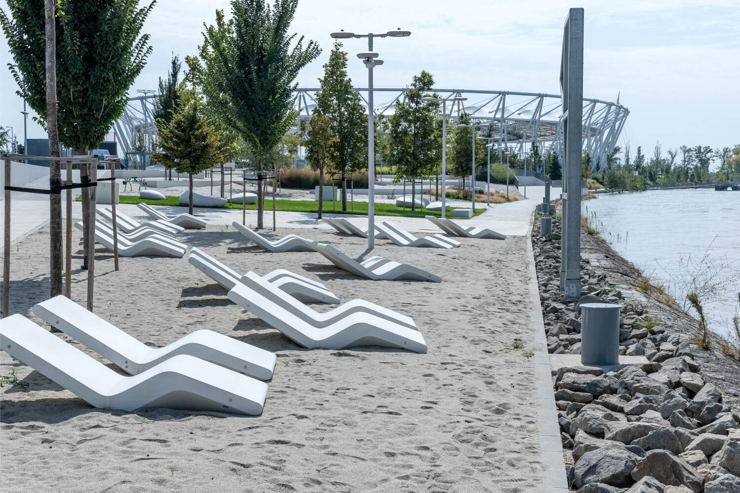 錦標賽結(jié)束后,上層看臺座位可以臨時性拆除,建筑也改造成以服務(wù)社區(qū)為主的設(shè)施,提供屋頂花園、“娛樂小道”、慢跑道、游樂場、街頭健身區(qū)、滑板場等可以進行教育、娛樂和社交活動的空間。此外,場地設(shè)有沙灘、運動場、寵物公園、太陽躺椅和戶外休息室,培養(yǎng)了社區(qū)意識,增強了社區(qū)凝聚力。