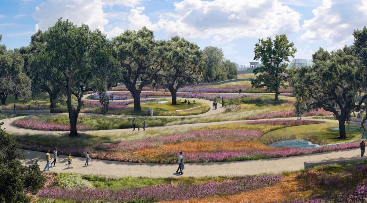 Reed Hilderbrand景觀設(shè)計事務(wù)所于近日公布了美國德克薩斯州圣安東尼奧植物園(San Antonio Botanical Garden)的總體更新規(guī)劃方案。項目占地約15.4h㎡。今年是植物園建立45周年,本次更新規(guī)劃將植物園定位為該市嶄新的教育和文化中心,更新了慢行道,并引入了新的無障礙項目,提升了場地的通達性。重新設(shè)計的無障礙步道將設(shè)置多處休憩設(shè)施,設(shè)施的周圍則環(huán)繞著“絲帶”狀的花田景觀。遮陽裝置、茂密的遮陰樹木、休息小站將遍布植物園各處,以應(yīng)對夏日的酷暑。
