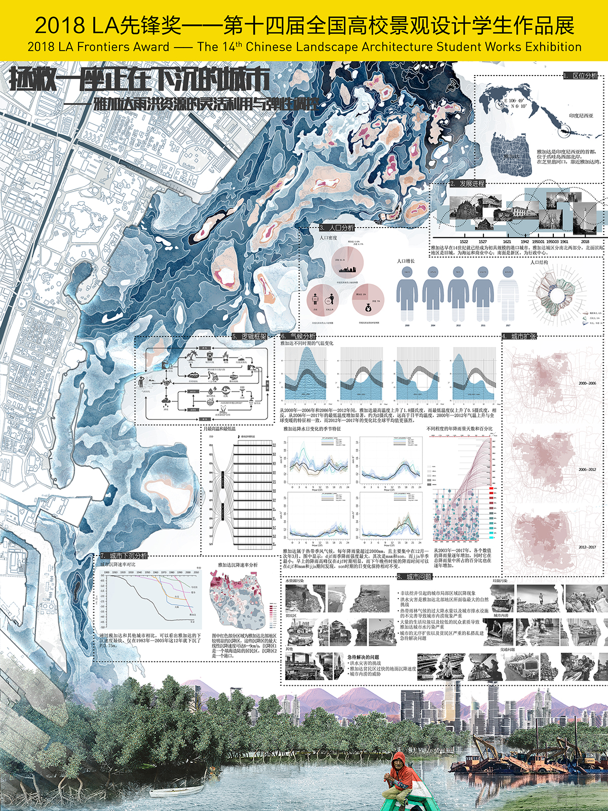 ▲首先對(duì)雅加達(dá)的區(qū)位進(jìn)行了分析,并選取一處問題較多較嚴(yán)重的北部地區(qū)作為設(shè)計(jì)基地。