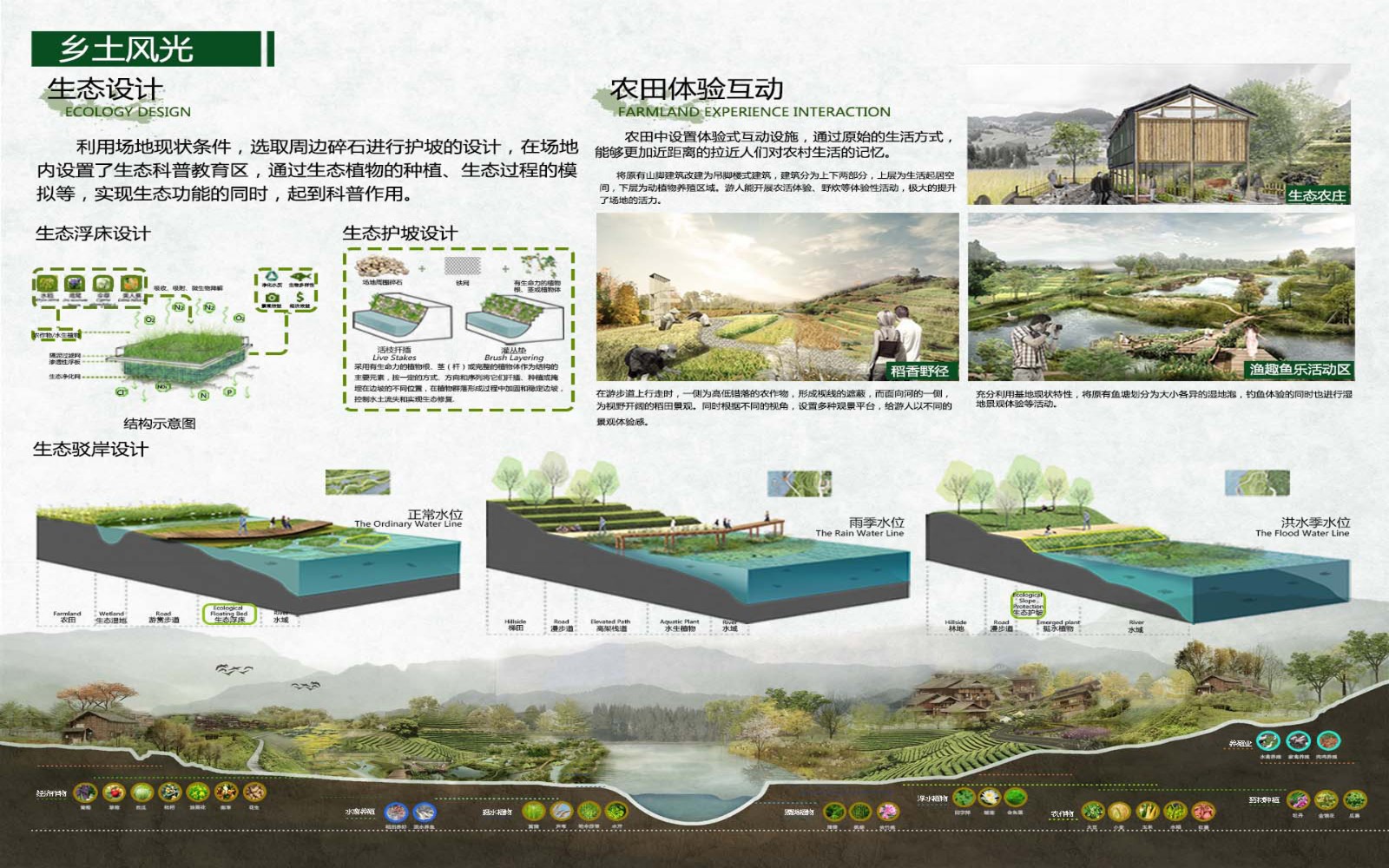 對于鄉(xiāng)土景觀有獨到的認識也解決方案。分析問題邏輯清晰,解決問題過程思維明確。特別是對于鄉(xiāng)土經(jīng)營提出了產(chǎn)業(yè)持續(xù)運營的解決方案。圖面表達清楚規(guī)范,邏輯線一目了然。