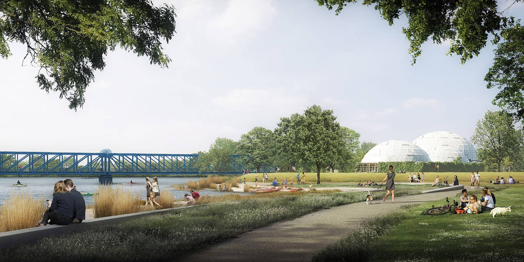 本方案通過釋放Guden?河流沿岸的大片土地來促進(jìn)未來的城市發(fā)展,創(chuàng)造出了更多的自然空間,增強(qiáng)了蘭德斯的生活多樣性,從而不僅保護(hù)了現(xiàn)有的自然環(huán)境,更創(chuàng)造出一系列適宜動(dòng)植物生活的自然棲息地。置身于這個(gè)城市中,游客們可以體驗(yàn)野生的自然環(huán)境,當(dāng)?shù)鼐用駛円部梢栽谌粘I钪懈兄匀弧?br/>