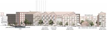 ▲新區(qū)立面圖局部,多樣化的屋頂景觀和建筑形式共同形成了新區(qū)的特征