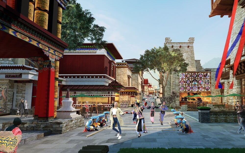 “商業(yè)街是項(xiàng)目里的重頭戲,連貫整個(gè)業(yè)態(tài)管道,可觀賞可互動(dòng),發(fā)揚(yáng)民族文化?!?/p>