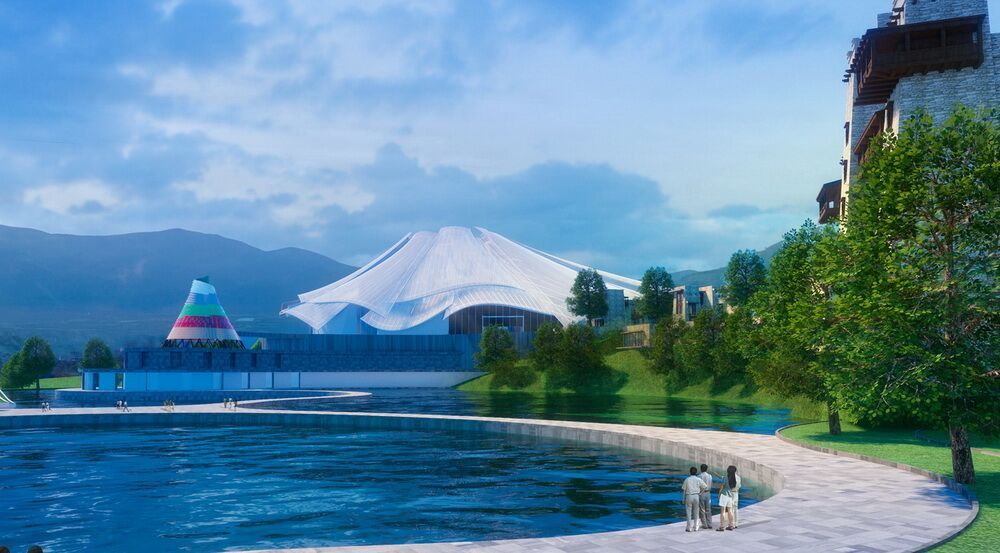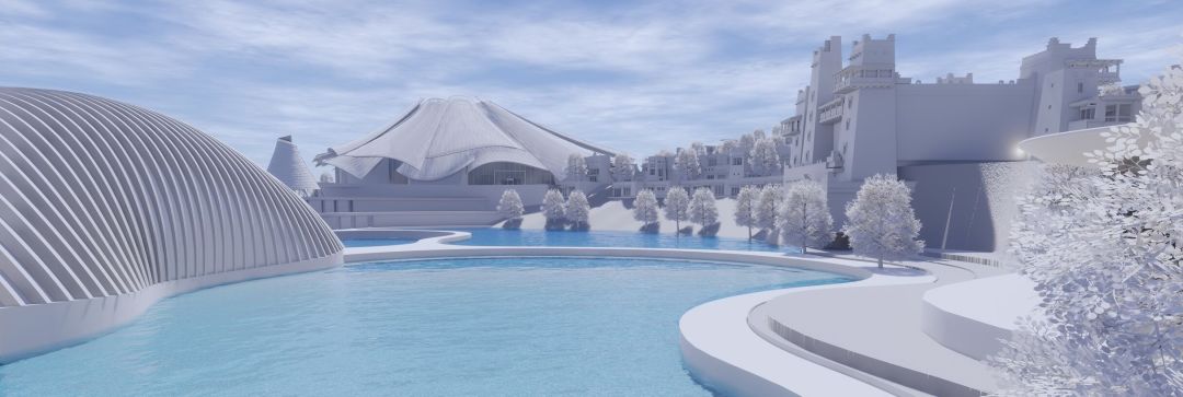 一街二院三中心是規(guī)劃主要核心,項(xiàng)目涵蓋了酒店、養(yǎng)生中心、飛行影院、祈福塔、購(gòu)物中心等。