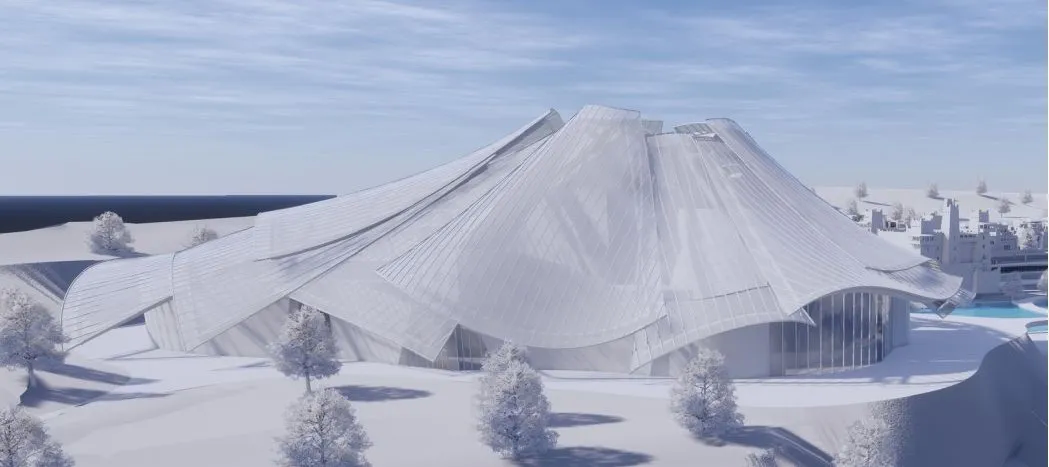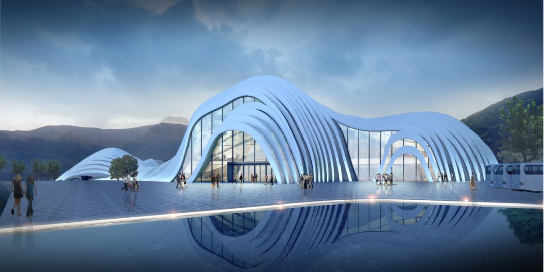 將哈達(dá)之靈動(dòng)摻以山川之重巒造就屋面高低錯(cuò)落,起伏變化,靈動(dòng)自然的仿生建筑杰作。