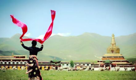 純白哈達(dá),輕舞飛揚(yáng),姿態(tài)曼妙,本敬奉神靈的貴重之物敬以世人。