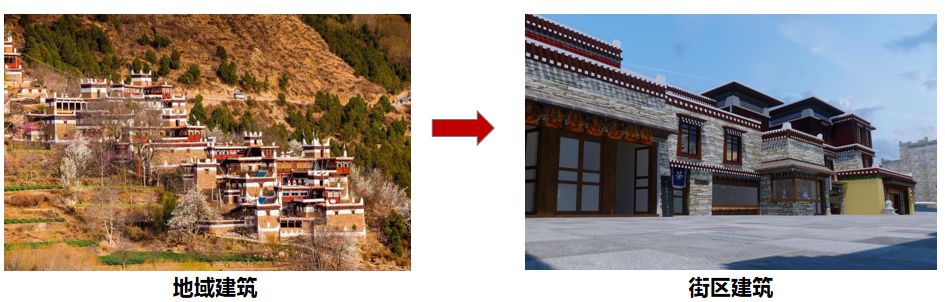 商業(yè)街各類陳設(shè)、窗戶、屋檐等融入民族特色,營(yíng)造古羌寨空間肌理和民俗非遺商業(yè)街的氛圍。