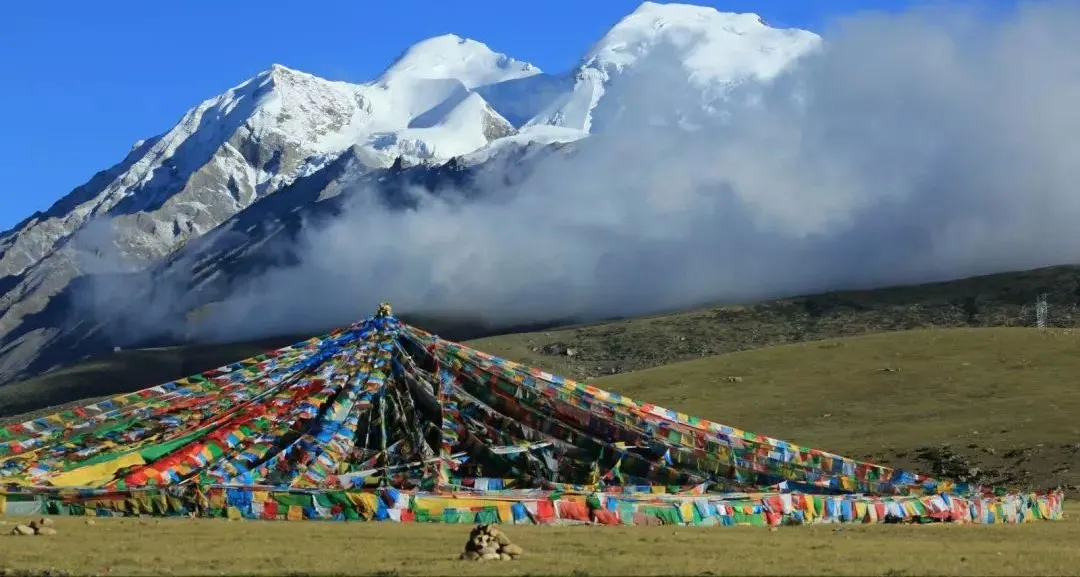 雪寶頂是當(dāng)?shù)氐纳裆?,各個(gè)角度看都蔚為壯觀,猶如天神蒞臨。傳說(shuō)是觀音菩薩的海螺號(hào)所化,人們十分信奉它,地位相當(dāng)于日本的富士山。