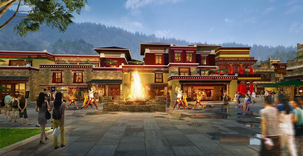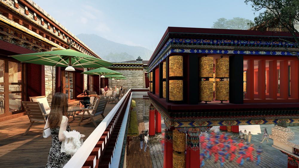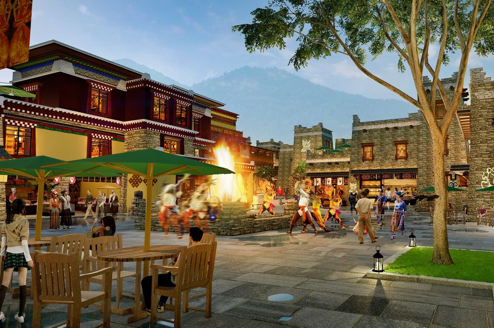 景區(qū)整合和拓展四川阿壩州、九寨溝文化資源,以藥泉特色為導(dǎo)向,將游、閑、養(yǎng)、憩相結(jié)合,拓展和豐富旅游功能空間,從建筑藝術(shù)角度加深當(dāng)?shù)匚幕∠?,助力傳統(tǒng)文化弘揚(yáng)。