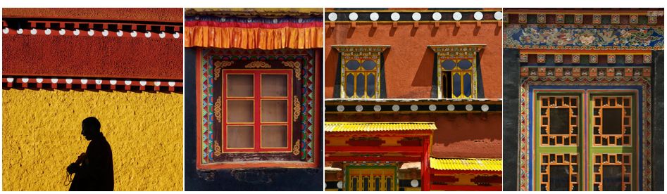 藏寨房屋雕鏤精美,墻上 、壁板繪有五顏六色的花卉、鳥獸,門上帖虎、獅燈動(dòng)物圖畫,寓意吉祥。