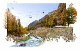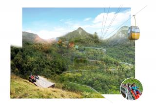 ▲夏季滑索纜車景觀效果 The cable car along the hill