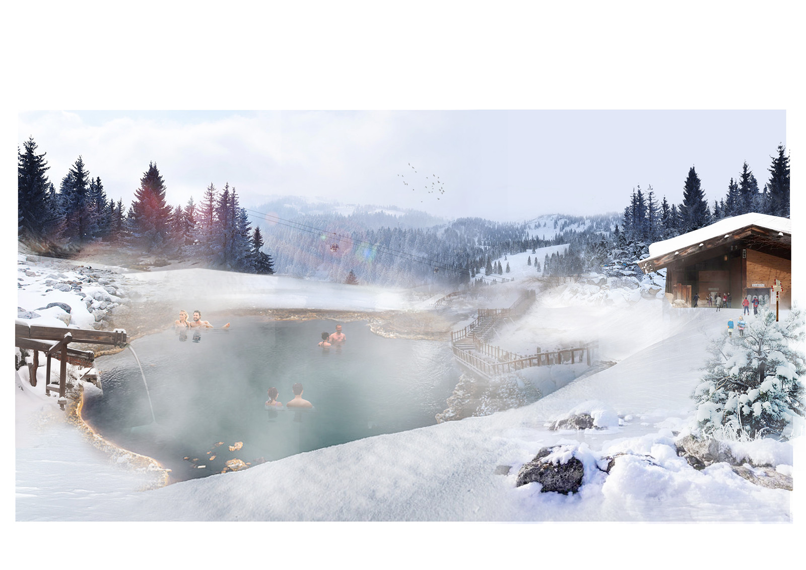 ▲冬季溫泉度假區(qū)效果 Spring area in Winter
