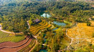 疏田:梳理島內(nèi)農(nóng)田結(jié)構(gòu)布局,再現(xiàn)原有水田和小尺度梯田的肌理結(jié)構(gòu)和生態(tài)條件,并結(jié)合“上田下庫+智慧灌溉”現(xiàn)代農(nóng)業(yè)儲水、灌溉等技術(shù),恢復(fù)部分原有水稻、油菜花、柑橘、向日葵等農(nóng)作物的種植,形成生態(tài)循環(huán)的農(nóng)業(yè)模式。
