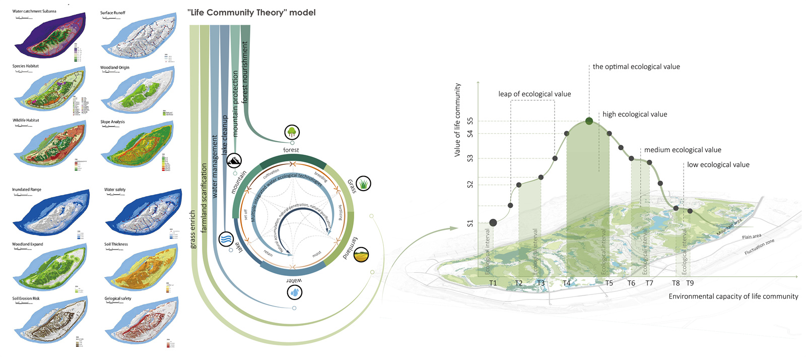 廣陽(yáng)島生態(tài)修復(fù)規(guī)劃設(shè)計(jì)遵循廣陽(yáng)島陸橋島自然生態(tài)系統(tǒng)內(nèi)在機(jī)理和演替規(guī)律,創(chuàng)新應(yīng)用“護(hù)山、理水、營(yíng)林、疏田、清湖、豐草”及“潤(rùn)土”策略,集成創(chuàng)新生態(tài)領(lǐng)域成熟、成套、低成本的技術(shù)、產(chǎn)品、材料、工法,融合生態(tài)設(shè)施、綠色建筑,精心打造“長(zhǎng)江風(fēng)景眼、重慶生態(tài)島”,生動(dòng)表達(dá)山水林田湖草生命共同體,建設(shè)示范以生態(tài)為魂、以風(fēng)景為象,人與自然和諧共生的最優(yōu)價(jià)值生命共同體。