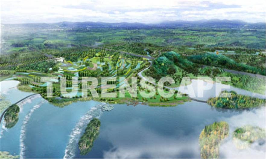 在上述設(shè)計(jì)理念指引下,形成了方案的幾大特點(diǎn):(1)田+等高線:結(jié)構(gòu)與象征性肌理;(2)梯級(jí)湖群+梯田濕地:最少工程量的場(chǎng)地設(shè)計(jì)途徑;(3)可持續(xù)的水系統(tǒng):渡水槽和水體凈化、循環(huán)和再用;(4)植被:景觀生態(tài)模式與“三皴法”配置;(5)軸線:五線譜上跳動(dòng)的音符,一部關(guān)于五色土地的交響樂;(6)場(chǎng)地故事:環(huán)境解說系統(tǒng)與專類植物園。