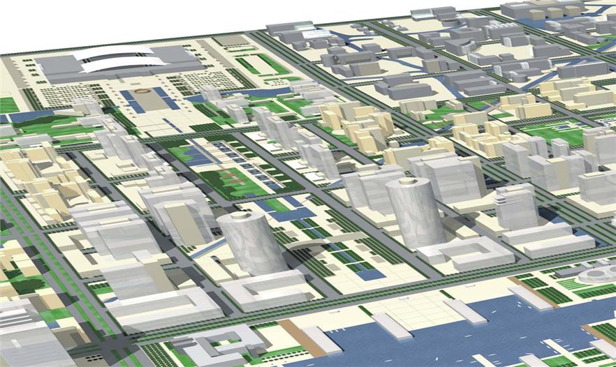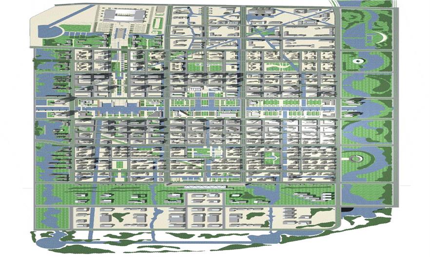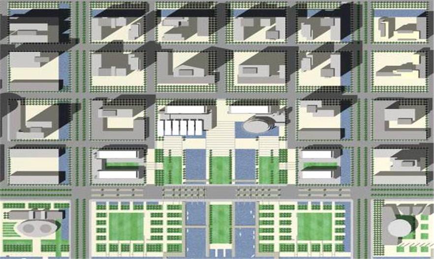 新城核心區(qū)位于世紀(jì)大道以東,高速公路以北,通途路以南,科技園區(qū)2號(hào)路以西,總用地約7平方公里,綜合方案以生態(tài)可持續(xù)發(fā)展為指導(dǎo)思想,充分考慮建筑、綠地、水系和道路的有機(jī)結(jié)合,建設(shè)一個(gè)與自然環(huán)境和諧融合的環(huán)保模范城市。規(guī)劃結(jié)構(gòu)上,創(chuàng)造“H”型號(hào)的城市軸線,圍繞軸線組織城市空間。沿東西向商業(yè)文化軸的兩側(cè)集中高層商務(wù)帶,中間結(jié)合綠地、水系,布置科技館、圖書館、音樂廳、博物館、群藝館等種類文化設(shè)施,使之成為聯(lián)系歷史和未來發(fā)展的紐帶;西側(cè)沿世紀(jì)大道開辟生態(tài)景觀軸,東側(cè)開辟景觀文化軸,形成新城連接甬江和東錢湖地區(qū)開放的城市景觀廊道。