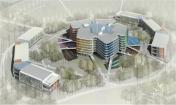 我們將校園分成三個(gè)大系統(tǒng)進(jìn)行設(shè)計(jì):其一是全校生態(tài)園,以自然山丘、水系原貌為主體,加以系列小廣場(chǎng)、人行步道穿插其中,使人可以親近自然。其二是群體組團(tuán),包括建筑群之間和建筑物之間的庭院空間。其三是在建筑物內(nèi)部,加入人工綠化生態(tài)環(huán)境,如:內(nèi)部天井、中庭綠化,屋頂綠化和平臺(tái)綠化等。校園三大系統(tǒng)形成一個(gè)有機(jī)的整體,是建筑與生態(tài)環(huán)境更密切地相互滲透和共生。在宏觀上,建筑群體結(jié)合地形地貌。在中觀上,盡可能地營(yíng)造綠樹(shù)成蔭、鳥(niǎo)語(yǔ)花香的場(chǎng)所環(huán)境。在微觀上,通過(guò)建筑遮陽(yáng)、通風(fēng)、利用太陽(yáng)能等生態(tài)技術(shù),盡可能地節(jié)約能源,創(chuàng)造宜人的室內(nèi)環(huán)境。
