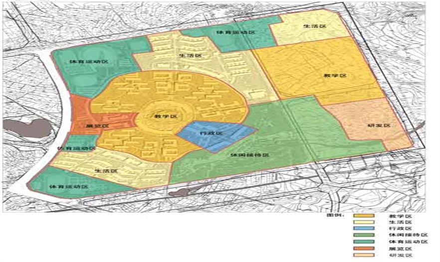 新校區(qū)的綠化系統(tǒng)分為綠化隔離帶、中央綠帶、契形綠帶、樓間綠化、休閑綠化、廣場(chǎng)綠化幾個(gè)部分。