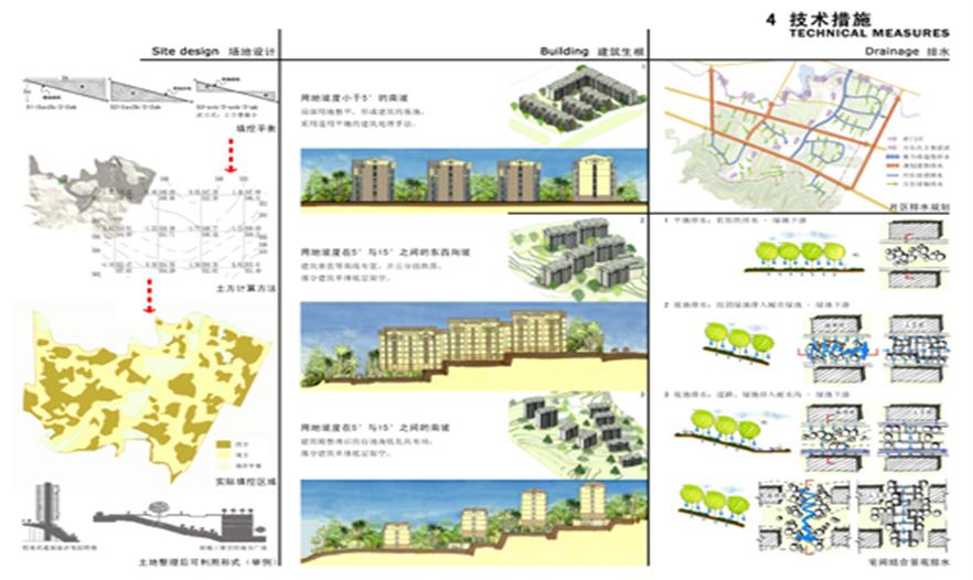 根據(jù)基地的坡度與坡向,采取相應(yīng)的建筑手法,創(chuàng)造適應(yīng)的建筑類型。