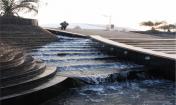 為適應(yīng)不同功能需求,我們?cè)诠珗@中營(yíng)造了多種類型的景觀空間,使之與場(chǎng)所周邊環(huán)境進(jìn)行融合。由南入口大型特色水景、中軸景觀燈柱、香樟樹陣、水池噴泉方陣、雕塑等組成的軸線景觀氣勢(shì)恢宏、莊重有序;而軸線東西兩側(cè)的自然山林水系布局則空間豐富多變、收放自由,大體量的“自然山林”背景使得CBD公園與中央商務(wù)區(qū)周邊的建筑群體相得益彰,達(dá)到了空間上的充分融合。