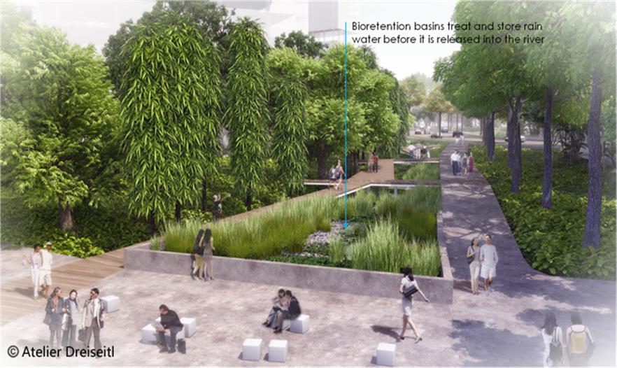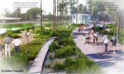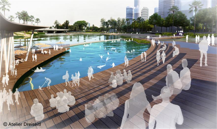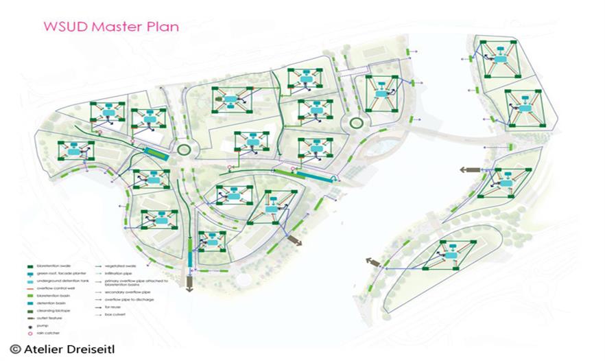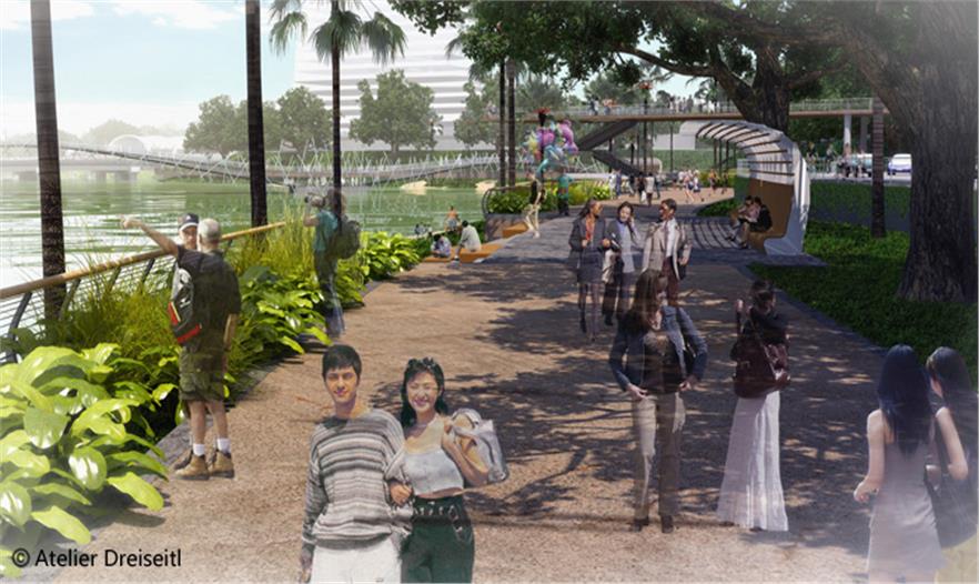 水敏感城市設(shè)計(jì)有別于功利性設(shè)計(jì),在它之中水體以一種特征標(biāo)志的形式出現(xiàn) – 自然式的泳池、生態(tài)凈化系統(tǒng)和水景藝術(shù)形式。除卻它們自身的功能性,還可以兼作為水質(zhì)監(jiān)測(cè)站。寬大的公園空間、沿水岸連續(xù)的步行道路、無(wú)圍墻的居住區(qū)開(kāi)發(fā)、富于變化的多功能區(qū)域、行人使用區(qū)域,以及具有場(chǎng)地獨(dú)特性、符合水敏感城市設(shè)計(jì)理念的建筑形式,在該區(qū)域的空間和環(huán)境規(guī)劃之中有機(jī)結(jié)合,為土地稀少的新加坡未來(lái)城市規(guī)劃做出了一個(gè)大膽的聲明:以環(huán)境敏感的方式為人們創(chuàng)造有品質(zhì)的生活空間。