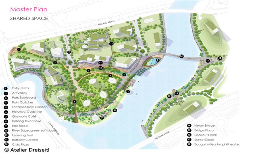在2008年新加坡的總體規(guī)劃中,城市重建局就已經(jīng)將加冷河畔確定作為未來(lái)10~15年之中的一處開(kāi)發(fā)區(qū)域。沿著海濱選址、且鄰近城市,此面積23公頃的區(qū)域?qū)⒈婚_(kāi)發(fā)成為一處優(yōu)質(zhì)的擁有居住區(qū)和酒店的城市社區(qū),成為該范圍內(nèi)擁有高標(biāo)準(zhǔn)、可持續(xù)城市展望的第一處水敏感城市設(shè)計(jì)區(qū)域。