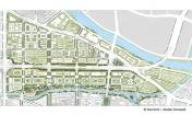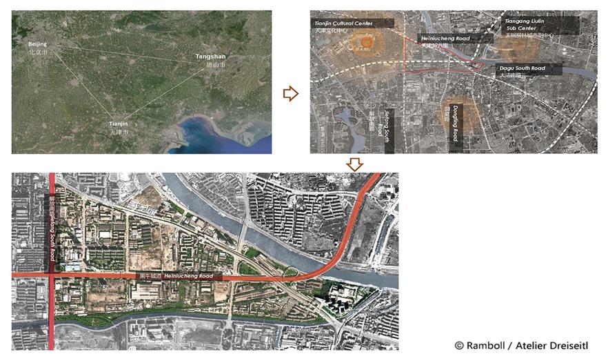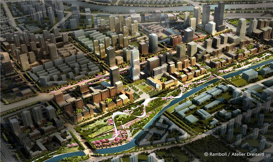 天津新八里城市景觀規(guī)劃于2013年12月進(jìn)行國際競標(biāo),德國戴水道公司以第一名成績?nèi)〉庙椖吭O(shè)計任務(wù)。該項目的規(guī)劃用地位于海河與復(fù)興河的交匯地帶,形成半島之勢,具備較長的河水沿線。它連接天津文化中心與天鋼柳林城市副中心。黑牛城道及解放南路作為天津主要的入市道路穿越項目地塊,因此,該項目占地將成為天津未來的門戶區(qū)域、代表天津的形象。八里代表了八個被分割的區(qū)域,新的規(guī)劃將八個部分打造成為“3+5”的模式。