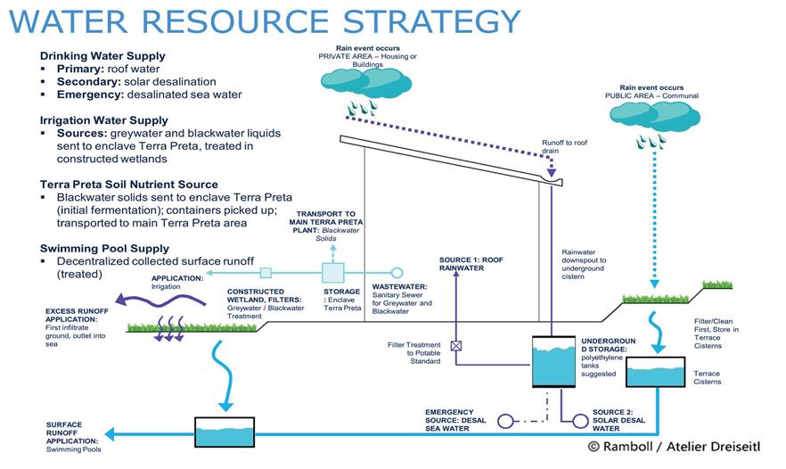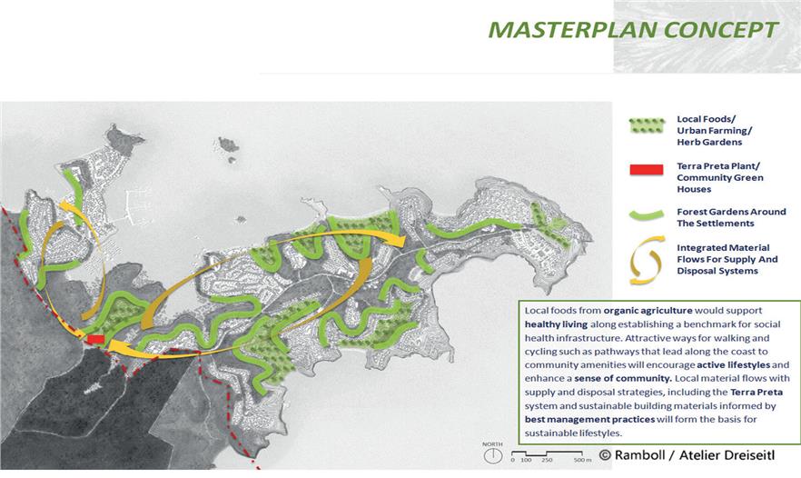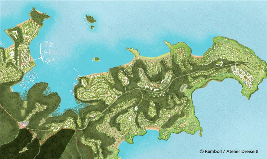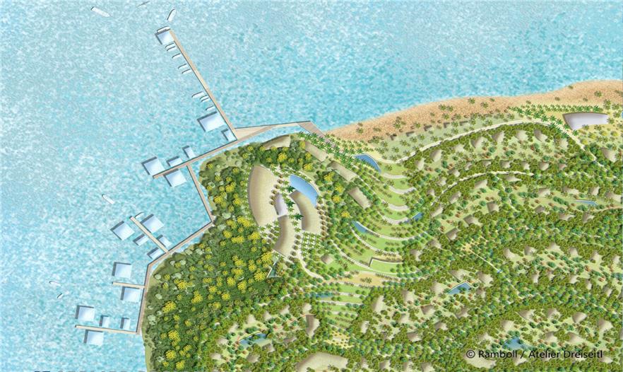 The Tanjung Ringgit site will include the first major developments of the Sekaroh Forest Eco-region. This conceptual masterplan will be the first implementation step for the Eco-region guidelines and will demonstrate cutting-edge approaches to not only sustainable design and technologies but also benefits of cooperation with the local communities. The masterplan for the Tanjung Ringgit site has been created so as to attract the highest-profile eco-tourism projects while simultaneously retaining, preserving, and restoring the natural environment of the area. For this an integrated and comprehensive framework has been developed to provide guidelines and the sustainable preconditions for tourism projects and related infrastructure. This approach shall enable the developments to remain economic and therefore future-proof through their life-cycle. The primary goals are to address climate protection, climate change, and water scarcity following the highest national and international standards yet based on fostering local and regional potentials. Furthermore the Sasak cultural heritage of the region will be integrated with contemporary climate responsive urban design and architecture approaches for creating a new green and hospitality-expressive architecture. The new eco-tourist villages should showcase both reduced environmental impact and the creation of vibrant places for experiencing local culture, sustainable technologies, and the highest quality recreation experiences.