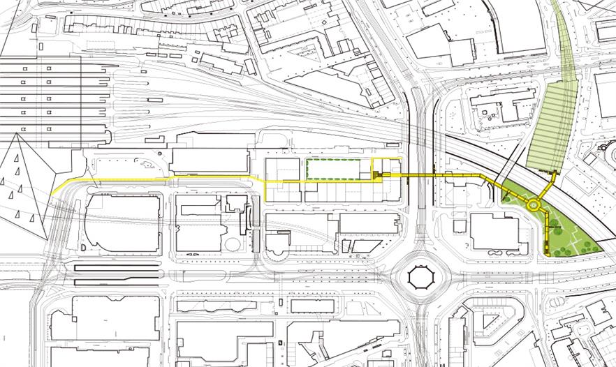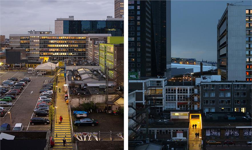 鹿特丹市中心建立起400米長的人行天橋用以連續(xù)三個(gè)核心區(qū)域---Pompenburg公園、Hofplein火車站屋頂花園、以及重要的城市商業(yè)公共空間與建筑,最終實(shí)現(xiàn)一個(gè)三維城市景觀。