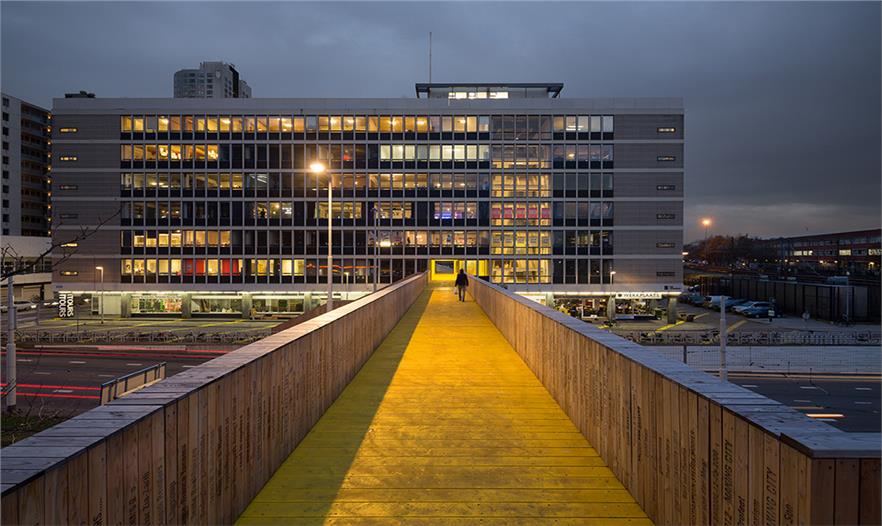 整個(gè)設(shè)計(jì)促進(jìn)了城市的進(jìn)化。在2011年,鹿特丹市中心出現(xiàn)了許多空置的辦公室,社會(huì)保險(xiǎn)機(jī)構(gòu)將其中一棟叫Schieblock的大樓做為城市實(shí)驗(yàn)室,把它改造成為一個(gè)叫Dakakker的企業(yè)孵化器,并在一層設(shè)置了商店,酒吧,餐廳,信心中心,還在屋頂設(shè)置了首個(gè)歐洲城市農(nóng)業(yè)屋頂天臺(tái),讓其成為一個(gè)可持續(xù)發(fā)展的原型。