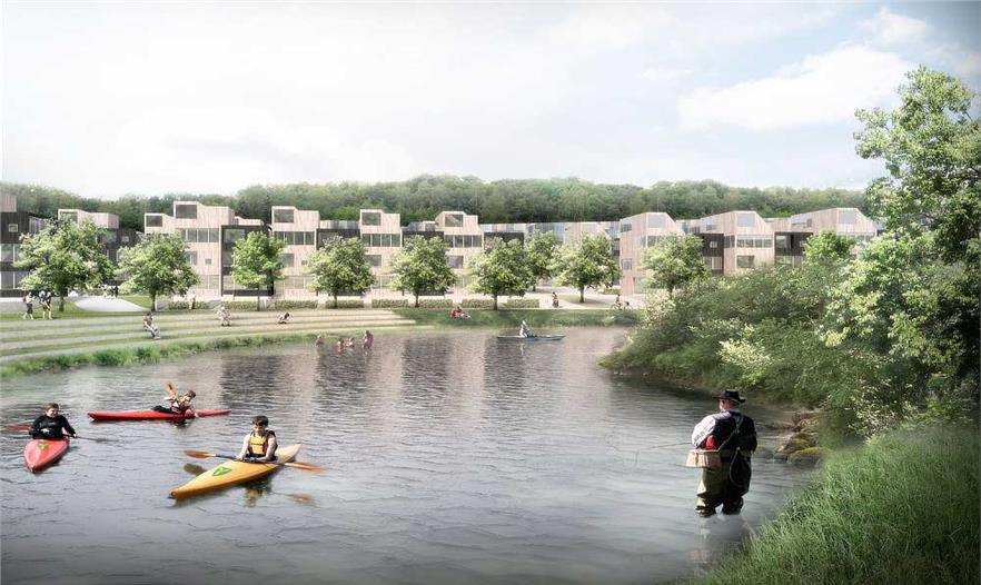 河流與水都是景觀特征,構成一個橫穿Nodeland城鎮(zhèn)的藍綠結構——“蜿蜒的城鎮(zhèn)”,在Sygnas河沿線發(fā)展起來。通過增強Sygna河東岸的城市(從火車站出發(fā)1千米距離內)密度,建造一個可管理的車站城鎮(zhèn),可以悠然地步行和騎自行車。