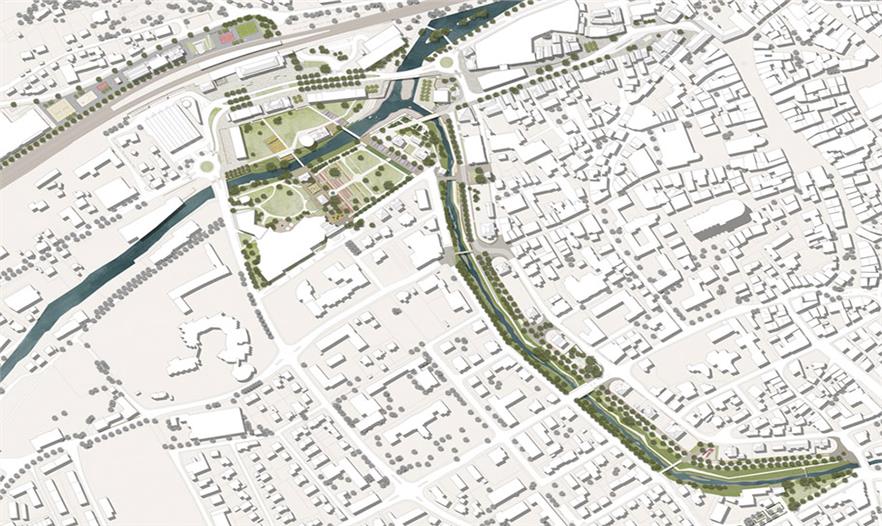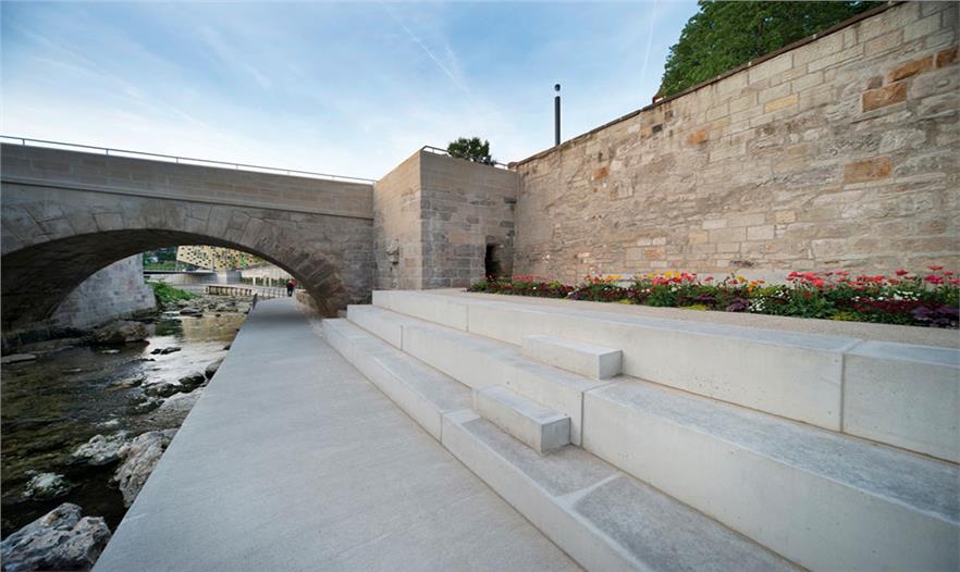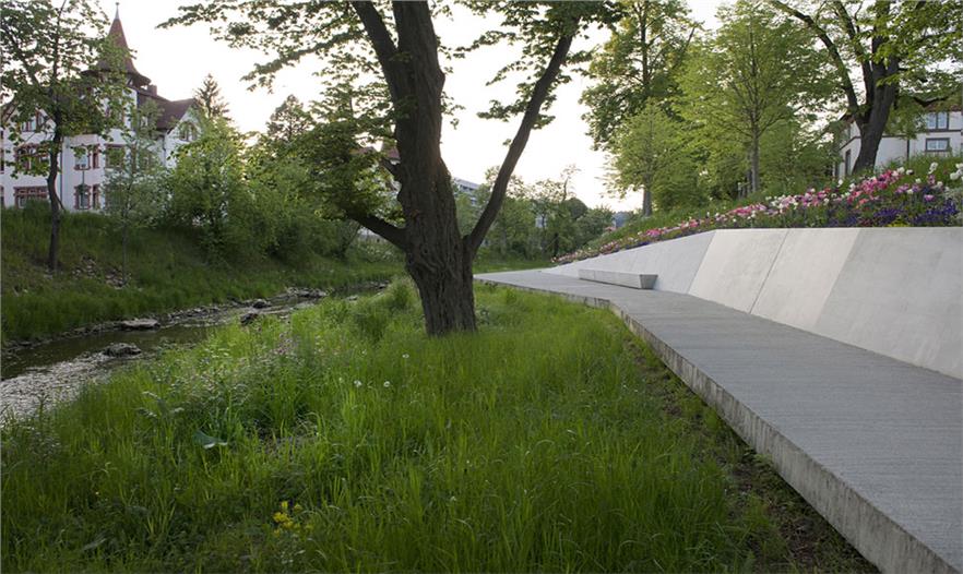 SCHW?BISCH GMüND是德國(guó)南部一個(gè)中等規(guī)模的城市,隨著城市化的推進(jìn)也產(chǎn)生了一系列的問題。該規(guī)劃是針對(duì)城市中心區(qū)域的改造方案,主要包括城市道路的改善以及公共區(qū)域的擴(kuò)建。A24 Landschaft的設(shè)計(jì)方案尤其注重護(hù)城河和城市道路綠化帶的建設(shè),同時(shí)還有體育場(chǎng)等設(shè)施的興建。規(guī)劃的一個(gè)標(biāo)志性建設(shè)就是通過河流的改造連接起原有城區(qū)和新區(qū)域。它把舊的巴洛克風(fēng)格的城市花園、河流沿岸的廣闊區(qū)域和老城進(jìn)行了整合,形成一個(gè)新的、寬敞的綠化區(qū)域。從這里一直到河口處,都可以看到煥然一新的綠化新面貌。