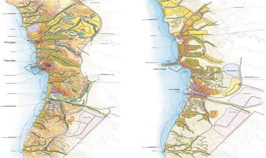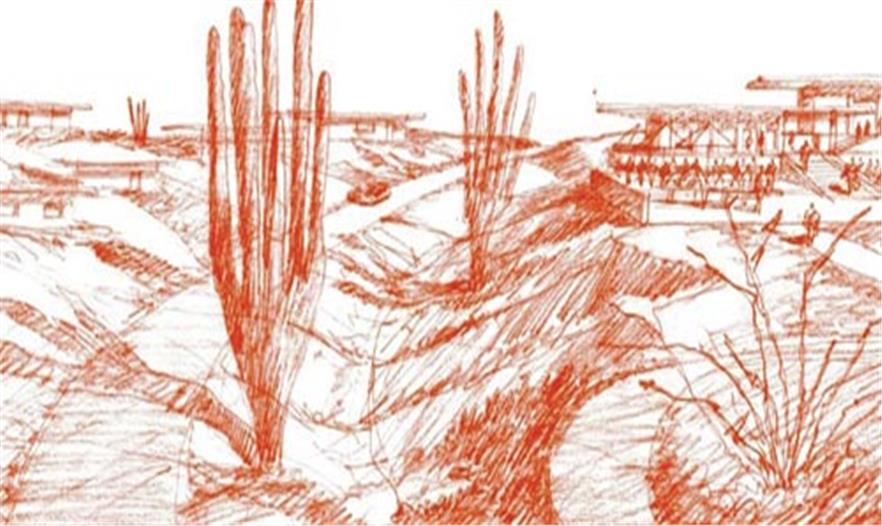這片30,000英畝的土地被用來設(shè)計成一個沿Cortez西海岸,預(yù)計容納60,000人口的新型可持續(xù)療養(yǎng)度假小鎮(zhèn)。距離美國5小時車程,或是可以在“Nautical Latter”(墨西哥政府為Cortez推出的新的旅游規(guī)劃)的新站下,此項目囊括了擁有全方位海上裝備服務(wù)的游艇,一級方程式賽車道,一個“運河小鎮(zhèn)”,另外他的鄉(xiāng)村中心,擁有先進(jìn)的醫(yī)療設(shè)備,新的停機(jī)坪,幾個大型賓館以及10,000個新的居住點。項目周圍會限制小汽車進(jìn)入;只有服務(wù)車和高爾夫球車可以進(jìn)入到項目中心區(qū),這樣一種宜人的開發(fā)尺度,能降低能源消耗和減少基礎(chǔ)設(shè)施建設(shè)。其他可持續(xù)措施還包括了雨水收集,風(fēng)能利用和種植脫鹽植物。