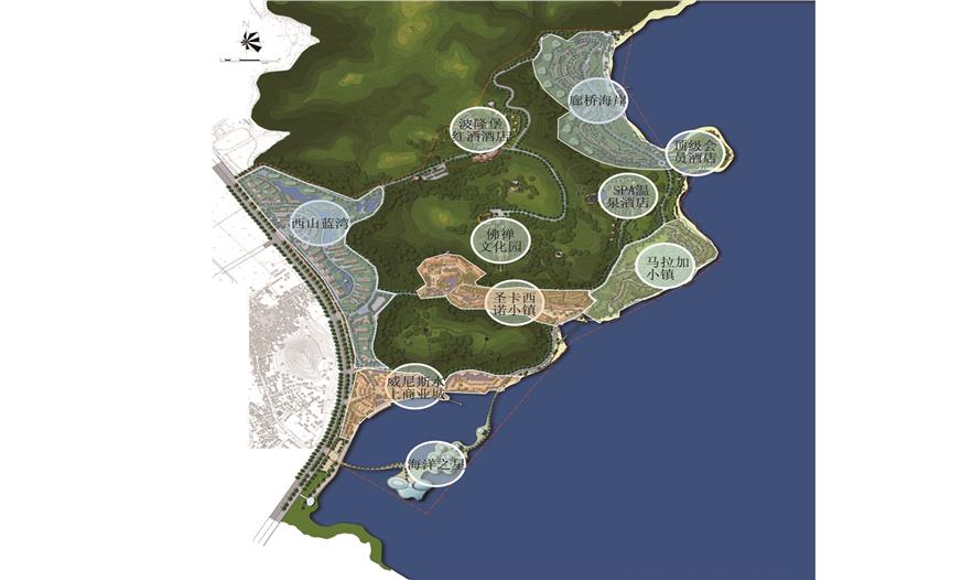 具體項(xiàng)目安排包括:旅館+佛寺旅游(4+1)、特色風(fēng)情小鎮(zhèn)、生態(tài)景觀高層居住、海洋之星的國(guó)際會(huì)展中心等??傮w規(guī)劃希望以高科技、生態(tài)化的設(shè)計(jì)理念,通過(guò)旅游與地產(chǎn)的互補(bǔ)優(yōu)勢(shì),為區(qū)域建設(shè)增添一道風(fēng)景線、一組發(fā)動(dòng)機(jī)。