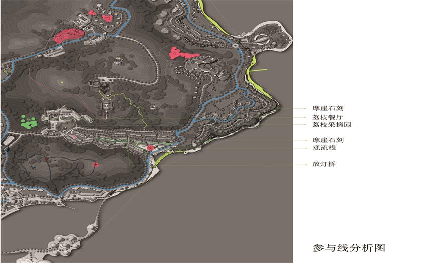 上位總體規(guī)劃提出以保護(hù)性開(kāi)發(fā)為原則,打造1-2處較有規(guī)模和吸引力的旅游項(xiàng)目。該項(xiàng)目是淇澳島整體中最重要的區(qū)域(221公頃),規(guī)劃以旅游為主脈,串聯(lián)起各個(gè)功能組團(tuán), 充分利用自然地貌,統(tǒng)籌安排各功能區(qū),布局相對(duì)集中,建筑景觀化,避免遮山擋海,將開(kāi)發(fā)與環(huán)境緊密結(jié)合。