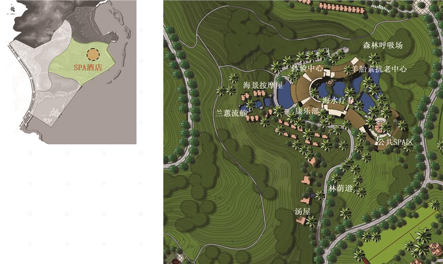 SPA溫泉酒店:融合古樹(shù),奇石,溪流,大海等諸多景觀因素,運(yùn)用對(duì)景,借景,造景等設(shè)計(jì)手法,打造具有獨(dú)特景觀品質(zhì)的視覺(jué)通廊,強(qiáng)調(diào)以人為本、生態(tài)優(yōu)先,人與自然的零距離接觸;同時(shí)圍繞溫泉SPA打造一系列高檔康體理療產(chǎn)品,結(jié)合高品質(zhì)度假酒店,形成一個(gè)具有異域風(fēng)情、國(guó)際品質(zhì)的SPA酒店度假區(qū)。