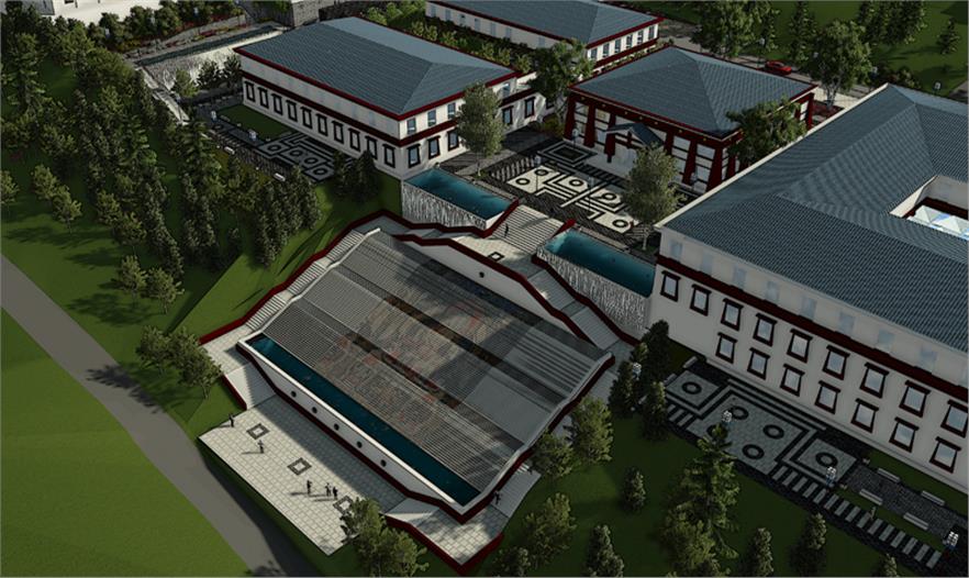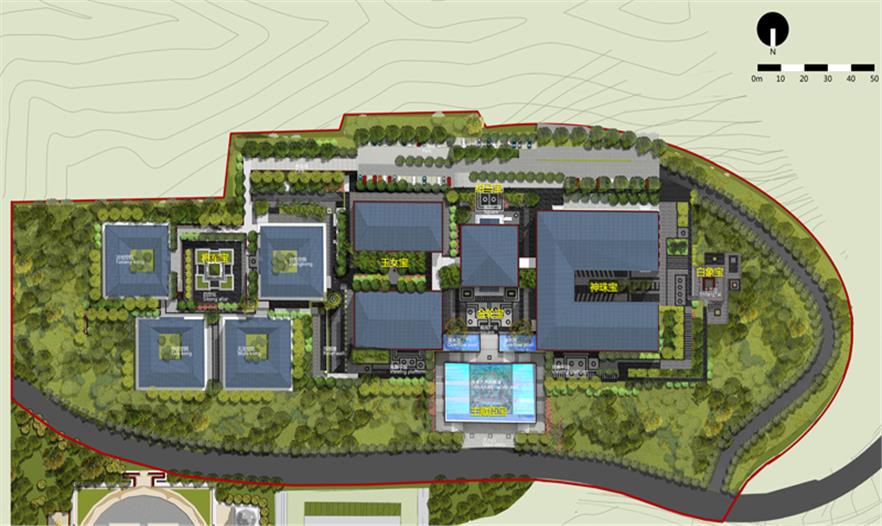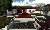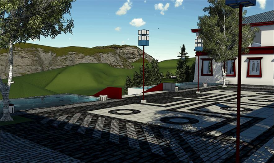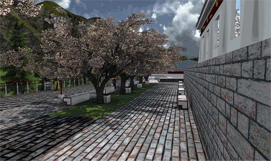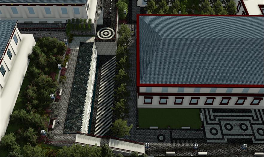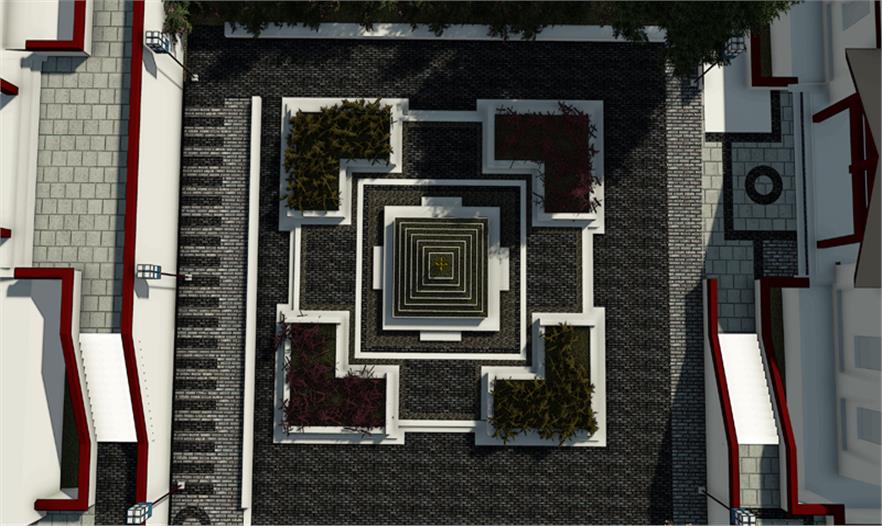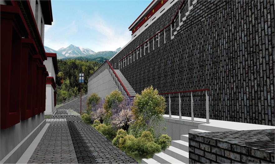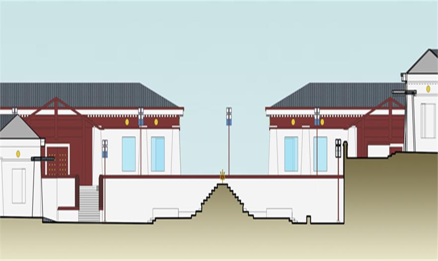 服務(wù)區(qū)內(nèi)部景觀設(shè)計(jì)與當(dāng)?shù)刈诮探ㄖL(fēng)格保持協(xié)調(diào)性,設(shè)計(jì)中提取典型建筑的代表性元素進(jìn)行新的排列組合,完成景觀再塑造。在藏傳佛教文化中瑟珠具有保護(hù)佩戴者使之消災(zāi)免禍的能力,藏人認(rèn)為瑟珠是超自然之物,常用護(hù)身符,以抵御各種邪惡影響。設(shè)計(jì)中提取瑟珠紋理元素融入到鋪裝等景觀設(shè)計(jì)小品中,使景觀設(shè)計(jì)更貼近主題。 景觀設(shè)計(jì)起始于對阿拉善文化內(nèi)涵及特點(diǎn)的分析,從蒙古族的宗教信仰,歷史變遷種尋本溯源。“馬背文化”影響下的人們,使用的物品明顯體現(xiàn)出藏傳佛教、蒙古習(xí)俗、中原文化等多元文化的融合。對于寺廟區(qū)附近的景觀及小品、鋪裝的設(shè)計(jì)樣式,以蒙古族一以貫之的藏傳佛教信仰為指導(dǎo),裝飾圖案多為龍,藏八寶等。蒙古族以蒼天為永恒最高神,白,藍(lán)是一種奇異,需要感激的東西。同樣對“白色”的這種理解也存在于蒙古等民族的語言中,他們共同構(gòu)成了北亞游牧民族精神的一種圣潔的角落。藏傳佛教對蒙古人民的政治,經(jīng)濟(jì),文化,社會(huì)習(xí)俗等諸多方面都產(chǎn)生了深遠(yuǎn)影響,從此,人們的思想,行動(dòng)以及文學(xué),史學(xué),藝術(shù)等諸多方面無不被打上藏傳佛教的烙印。紅色的廟宇被賦予了神圣的光芒。