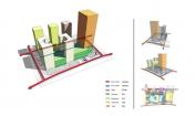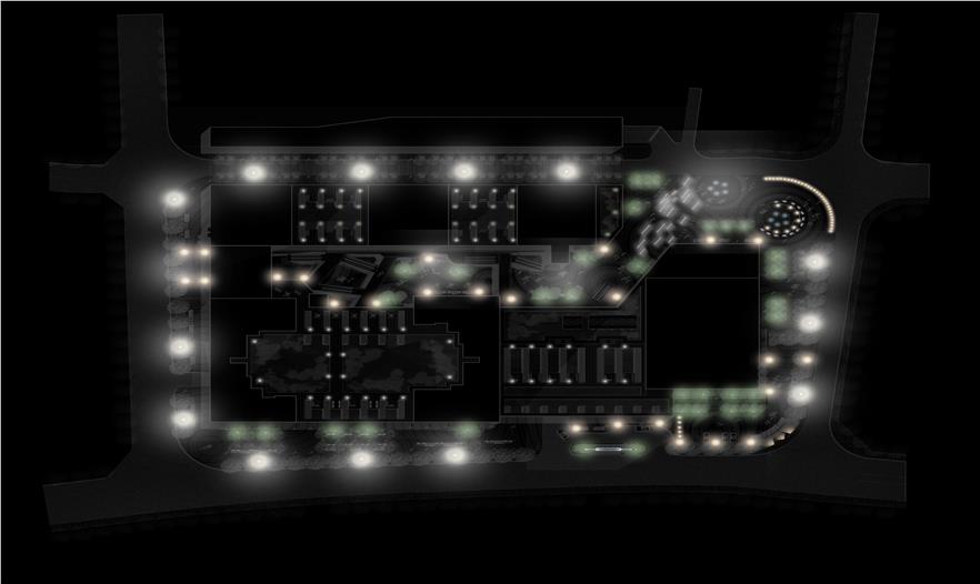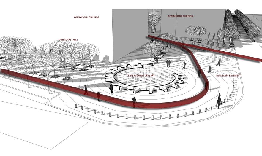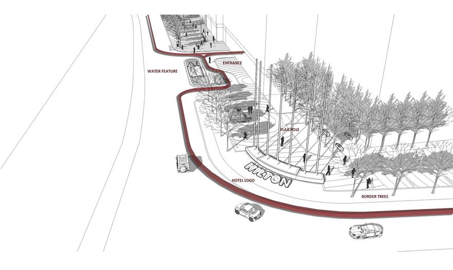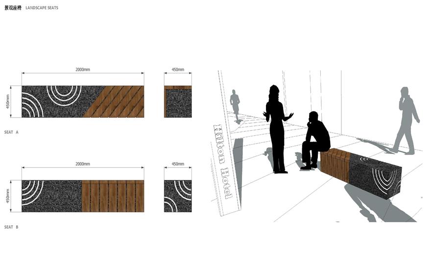 株洲希爾頓酒店景觀的設(shè)計(jì)時(shí)間非常緊張,一共只有四天。設(shè)計(jì)團(tuán)隊(duì)希望在最短的時(shí)間內(nèi)找到一種簡(jiǎn)單的設(shè)計(jì)語(yǔ)言來(lái)解決復(fù)雜的空間序列,并力求將設(shè)計(jì)滲透到各個(gè)必要的細(xì)節(jié)當(dāng)中:比如說(shuō)商業(yè)街座椅,指示牌,公交站的設(shè)計(jì)等等。首日,設(shè)計(jì)團(tuán)隊(duì)以“水”的概念,抽象出彩色圓環(huán)的形式,結(jié)合并考慮建筑形式以及功能將“水”形式融入到場(chǎng)地中去。最后根據(jù)場(chǎng)地的功能性進(jìn)行分區(qū),再根據(jù)各個(gè)分區(qū)的功能將空間特征放大化。確定總體布局后,我們利用兩天時(shí)間將全區(qū)的su模型進(jìn)行了簡(jiǎn)要的制作,推敲空間關(guān)系。最后我們結(jié)合全區(qū)的設(shè)計(jì)語(yǔ)匯融入到各個(gè)功能節(jié)點(diǎn)以及小品中去,完成了最后的設(shè)計(jì)。