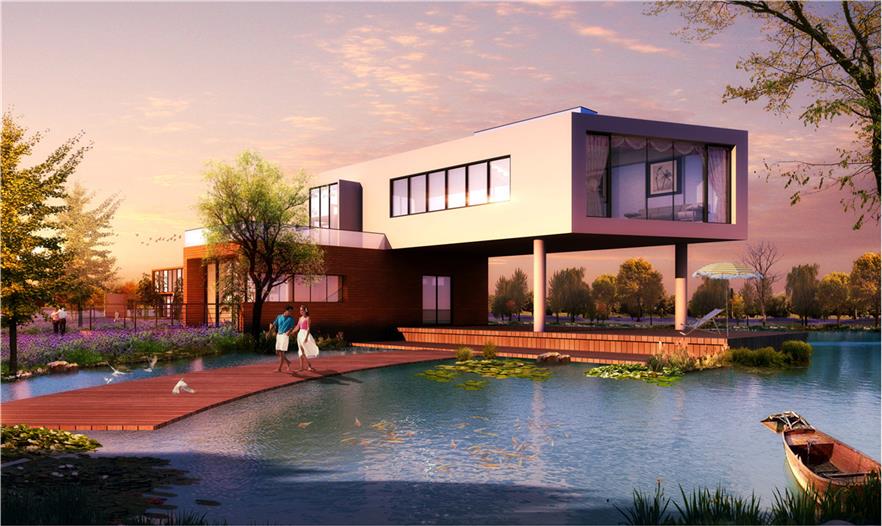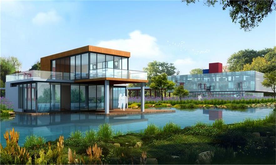 設(shè)計(jì)師以“生態(tài)景觀休閑”為主題,商務(wù)客戶和度假休閑客戶為目標(biāo)市場(chǎng),精心打造滬上獨(dú)一無(wú)二的精品酒店——“花海中的魔方”。建筑的設(shè)計(jì)風(fēng)格體現(xiàn)為作為簡(jiǎn)約美學(xué)典范的新現(xiàn)代主義,其簡(jiǎn)約、洗練、純粹的抽象形式更能使建筑與周邊的景觀融合在一起,使二者相得益彰。在別墅的設(shè)計(jì)中,第一、二層設(shè)有大面積的露臺(tái),便于觀景、眺望、乘涼、舉辦室外派對(duì)等活動(dòng),在提升別墅品質(zhì)感的同時(shí)也塑造了別墅建筑空間體量的穿插、疊加和組合效果。在綠色節(jié)能設(shè)計(jì)方面,除采用底層架空、水面、綠化、屋頂花園等方式營(yíng)造良好小氣候外,在多處幕墻上還設(shè)置了類(lèi)似于拔風(fēng)井的構(gòu)造(黃色和紅色大體塊)來(lái)加速空氣流動(dòng),充分體現(xiàn)了精品度假別墅的理念。
