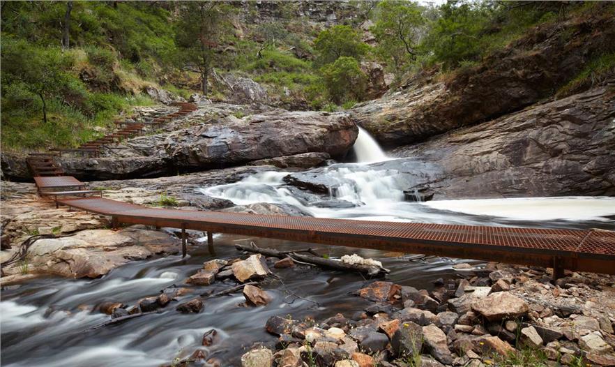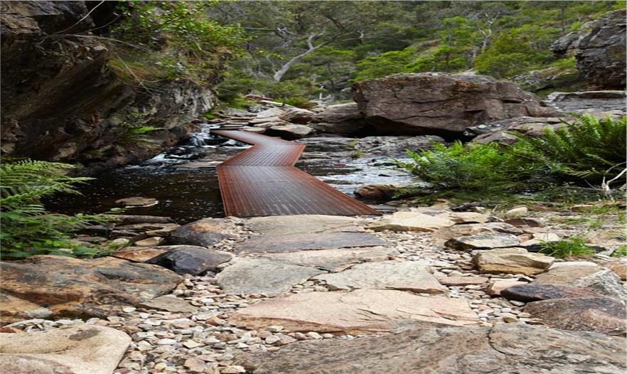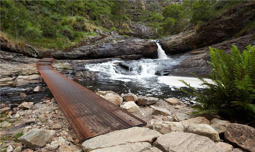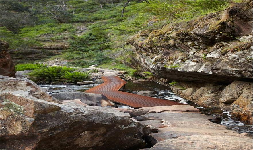 Hansen Partnership團隊受到維多利亞公園管理機構(gòu)的邀請,將要對麥肯基瀑布周邊的風(fēng)景做一個改造。眾所周知,該地區(qū)在2012年的上半年曾遭遇過洪水襲擊,當(dāng)時導(dǎo)致了該公園人行橋的坍塌,在經(jīng)過幾年的景觀修復(fù)后,這里依然是當(dāng)?shù)厝朔潘缮硇牡氖走x場所。在這片公園保護區(qū)內(nèi),設(shè)計團隊與維多利亞公園的職工密切合作,對這里的自然景觀做了大致的修整,使之與旁邊的瀑布是從視覺上結(jié)合的更加緊密。