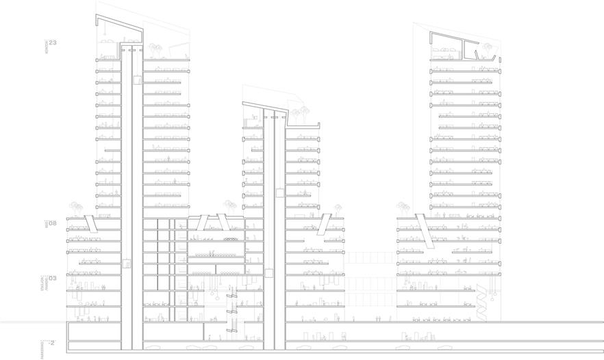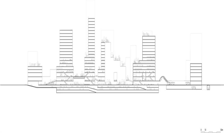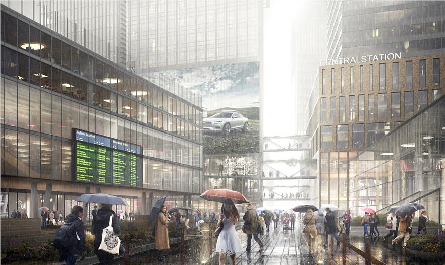 該城市的一個復(fù)雜、松散的區(qū)域被改造成一個大受歡迎的城市空間,設(shè)置人性化功能和區(qū)域。該項(xiàng)目的目標(biāo)是賦予該城市更多,不僅僅是公交車和火車終點(diǎn)站。從字面上講,該項(xiàng)目的基礎(chǔ)是如今大型公共、私人和商業(yè)區(qū)的基礎(chǔ)設(shè)施功能,經(jīng)由高架的公交車和火車終點(diǎn)站結(jié)構(gòu)連接起來。這里將包括公共廣場和城市空間的一切,如運(yùn)動和休閑區(qū)、辦公區(qū)、商店、酒店和居住區(qū)——類似城中城。Reiulf Ramstad Arkitekter事務(wù)所、Kanozi Arkitekter事務(wù)所和Erik M?ller Arkitekter事務(wù)所合作完成這些設(shè)計(jì)方案。