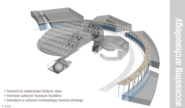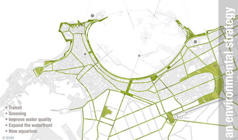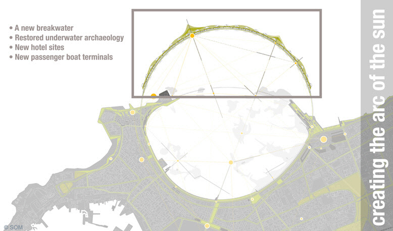 總體規(guī)劃的目標(biāo)是亞歷山大東區(qū)海港的再生,并幫助重新建立城市作為世界領(lǐng)先文化中心之一的地位。該設(shè)計(jì)力圖重新振興海濱環(huán)境,改善交通和行人無障礙設(shè)施,增強(qiáng)公民的目的地。通過整合現(xiàn)有的歷史遺跡和投資機(jī)會(huì)旅游業(yè)將得到加強(qiáng)。