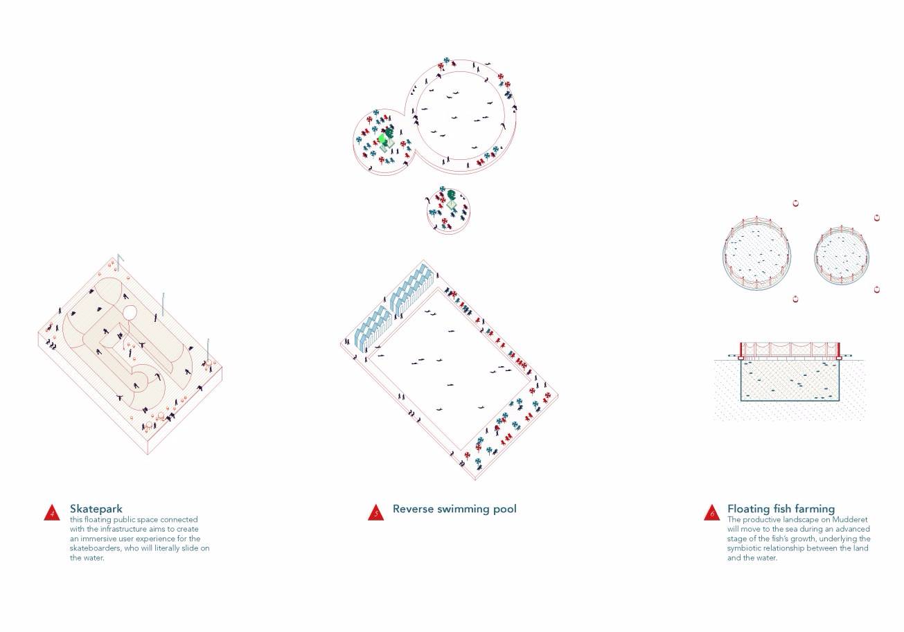 第三階段:激活基礎(chǔ)設(shè)施,將其與新建的漂浮建筑和公共空間連接起來。這部分設(shè)計是為了締造連接海岸線和海水的海洋基礎(chǔ)設(shè)施。