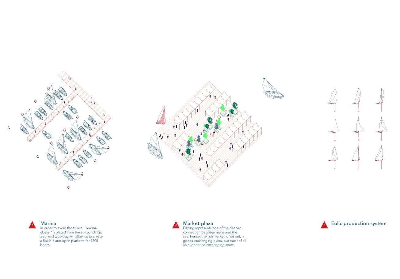 碼頭:為了避免將傳統(tǒng)意義上的碼頭從周圍環(huán)境中分離出來,分散式的布置可以讓我們創(chuàng)造更加靈活而開放的停靠平臺,可為1500艘航船提供服務(wù)。