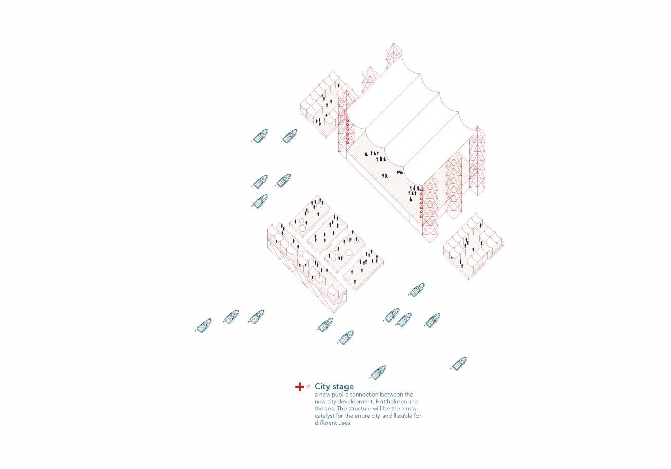城市舞臺:城市新開發(fā)區(qū)、哈托爾曼和大海之間的公共連接空間。該場所的搭建將成為整個城市的催化劑,具有靈活多用的特性。