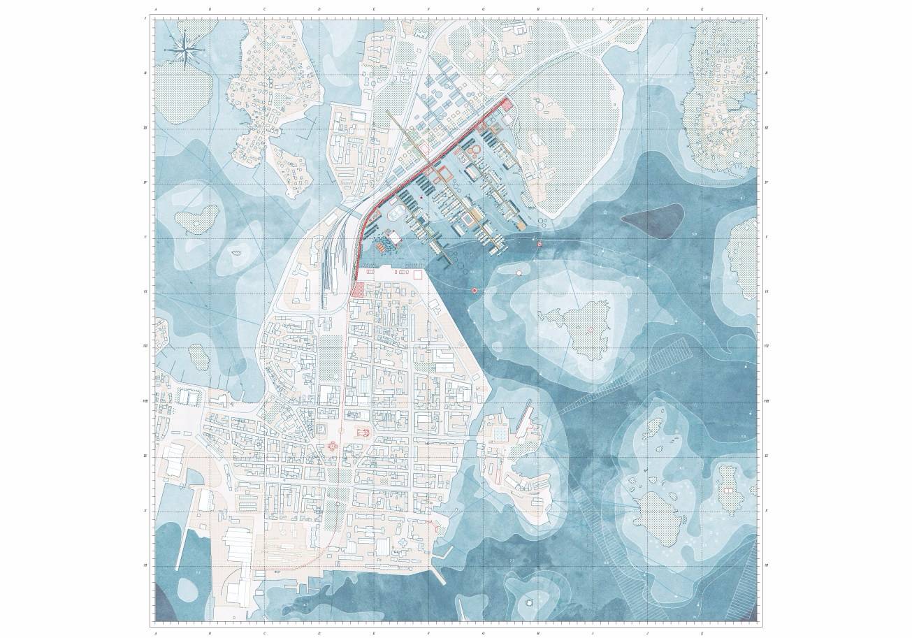 項目的目標(biāo)在于使用城市法則在城市構(gòu)成尺度對群島的結(jié)構(gòu)進行重譯,在海面上創(chuàng)建一個全新的浮動區(qū)域?!叭簫u內(nèi)嵌套群島”的構(gòu)想提出了一種城市策略,它能夠在城市和自然環(huán)境之間產(chǎn)生一種新的關(guān)系,其作為連接性結(jié)構(gòu)的同時還可以形成新的市民定居點。
